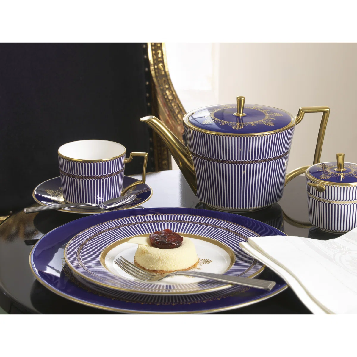Volutamente opulenta, innegabilmente elegante, la porcellana Anthemion Blue brilla grazie al ricco sfondo blu cobalto che contrasta con le sontuose decorazioni in oro e i delicati elementi di design neoclassico, come il colonnato, l’alloro, l’anthemion greco e le figure classiche, creando il massimo del lusso per la tavola. Le porcellane Wedgwood arredano le case e i palazzi dei clienti più esigenti del mondo da oltre 250 anni. Con i più elevati standard di controllo qualità del settore e un’attenzione particolare al design all’avanguardia, le stoviglie in fine bone china Wedgwood Prestige rappresentano la testimonianza dell’impegno dell’azienda per la buona tavola, uno stile di vita raffinato e un lusso senza tempo.