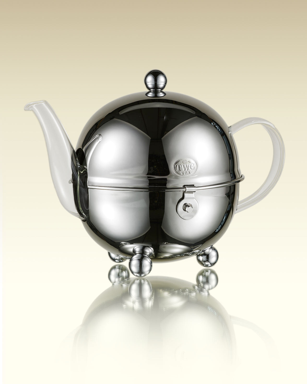 La teiera in vetro di design è avvolta in un elegante scaldavivande in acciaio inossidabile lucidato a specchio con rivestimento interno in feltro, che unisce la praticità delle moderne funzionalità al piacere di servire il tè nella classica bellezza di un design esclusivo TWG Tea. La teiera in vetro è dotata di un filtro rimovibile appositamente progettato che permette alle foglie di aprirsi e di sprigionare il loro aroma durante l’infusione. Questa teiera è perfetta per tutti i tipi di tè e delizierà gli amanti del tè che desiderano apprezzare il colore delle diverse infusioni.