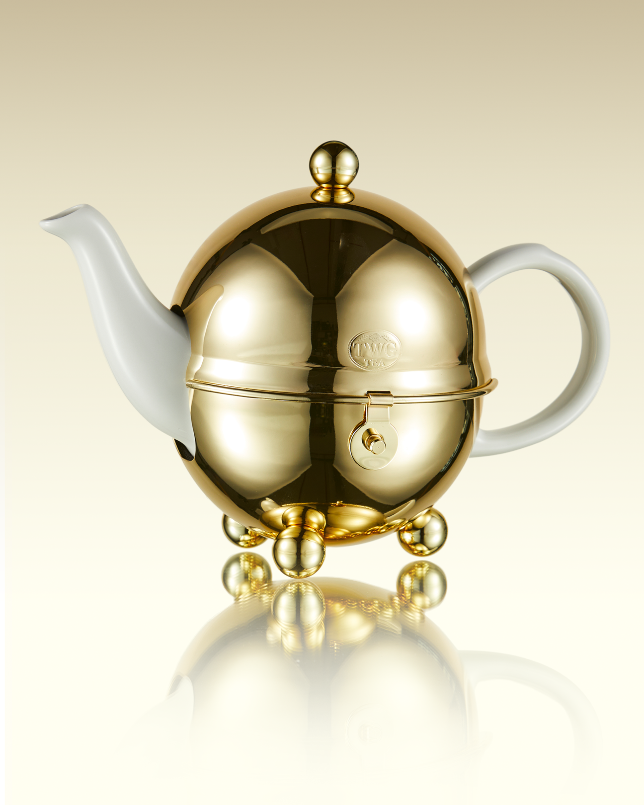 La collezione di teiere Jazz Gold unisce la praticità delle moderne funzionalità alla bellezza classica di un design esclusivo TWG Tea. Un supporto riscaldante placcato in oro con finitura a specchio e rivestimento interno in feltro avvolge ogni teiera in ceramica, mantenendo il tè caldo fino a un’ora, ed è impreziosito da brillanti pomelli dorati. Tutte le teiere sono dotate di un filtro a rete rimovibile appositamente progettato che permette alle foglie di aprirsi e di sprigionare il loro aroma durante l’infusione. Sono disponibili anche zuccheriere e lattiere abbinate. Questa collezione è adatta a tutti i tipi di tè.